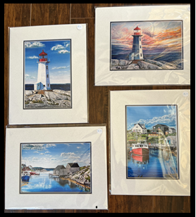 high quality paper with a mat or on canvas. I have a variety of Peggy's Cove village and lighthouse prints available in 8 x 10, 11 x 14, and 16 x 20 inches.