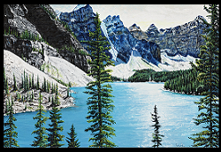 Carole's first oil painting was the one of Moraine Lake, Alberta, Canada. This one was painted Carole had visited Moraine Lake and found it to be truely majestic! So, it was of course her first choice to be her very first oil painting. Quality prints have gone to her some of her favorite people!